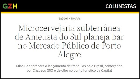 Zero Hora dá destaque ao lançamento da franquia da Mina Beer, primeira microcervejaria subterrânea do mundo, localizada em Ametista do Sul/RS.