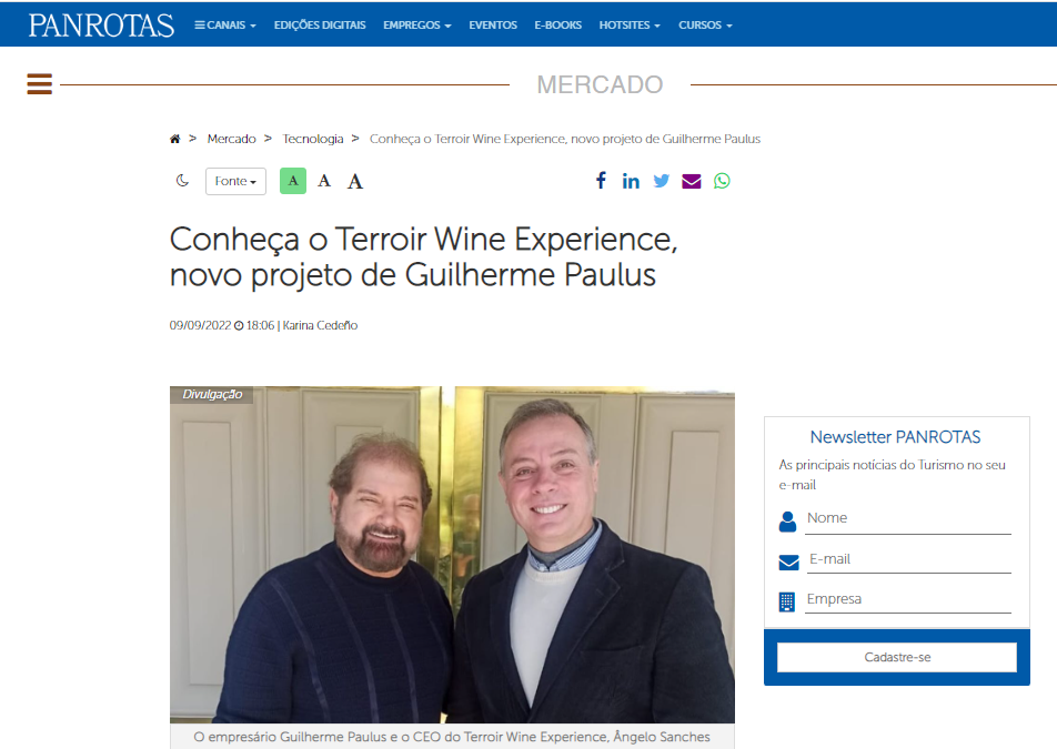 Plataforma Terroir Wine Experience unirá oportunidades voltadas ao enonegócio e enoturismo. Projeto desenvolvido em conjunto pelo Grupo M.Stortti e pelo empresário Guilherme Paulus, fundador da CVC e da GJP.